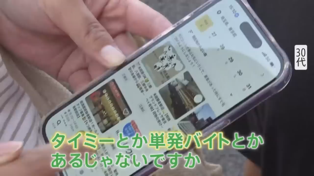 “我用タイミー(临时打工App),有多余开销的时候,就找点兼职干。收银、搬货、做点工厂活。”