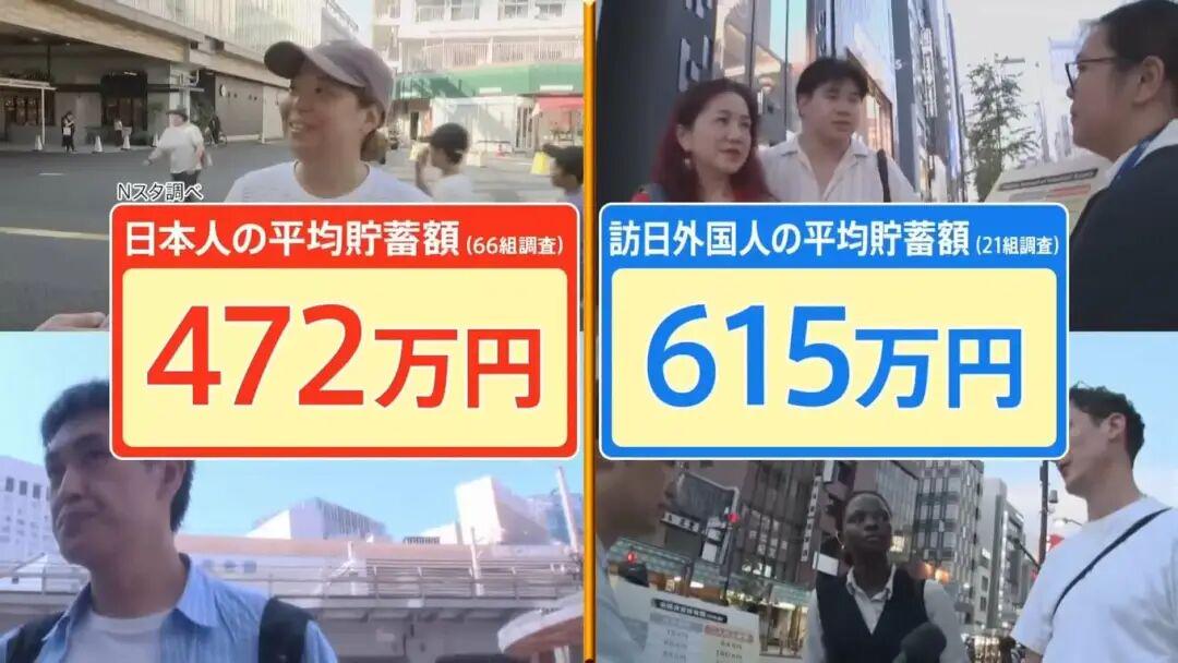节目总结:这次街头采访的平均值,日本人储蓄额为472万日元(约合人民币22万元),而外国人平均是615万日元(约合人民币29万元)。