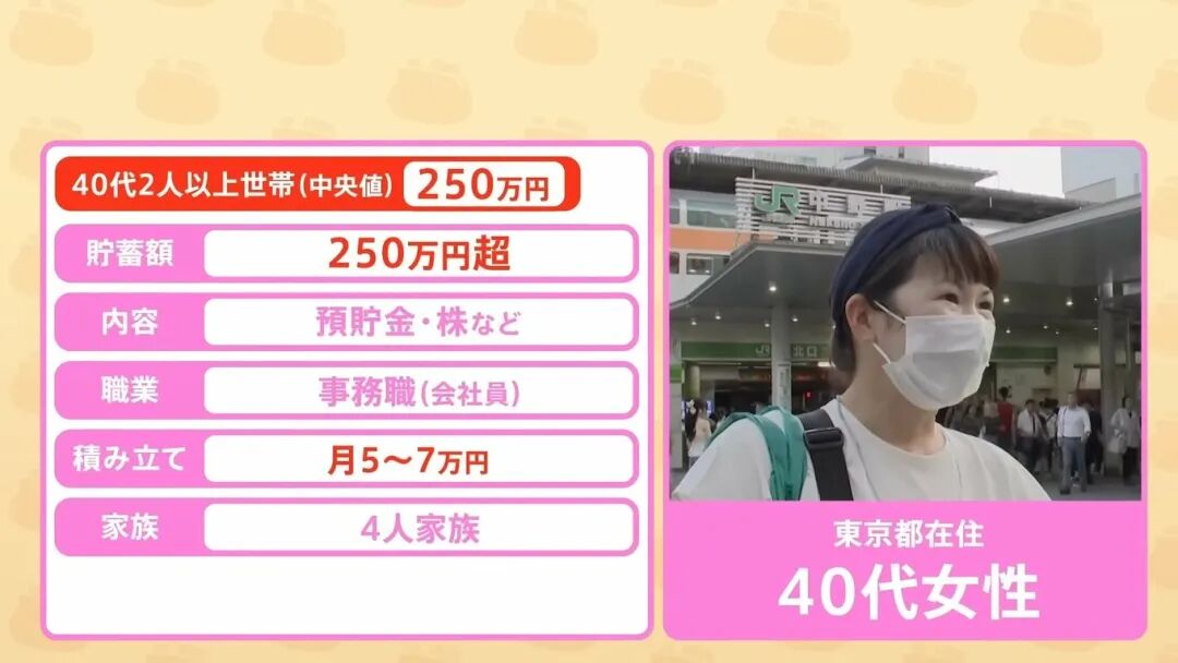 另一位受访者是40代的女性,住在东京,4人家庭。她说自己存款有250万日元左右(约合人民币11.7万元)日元(约合人民币11.7万元)。