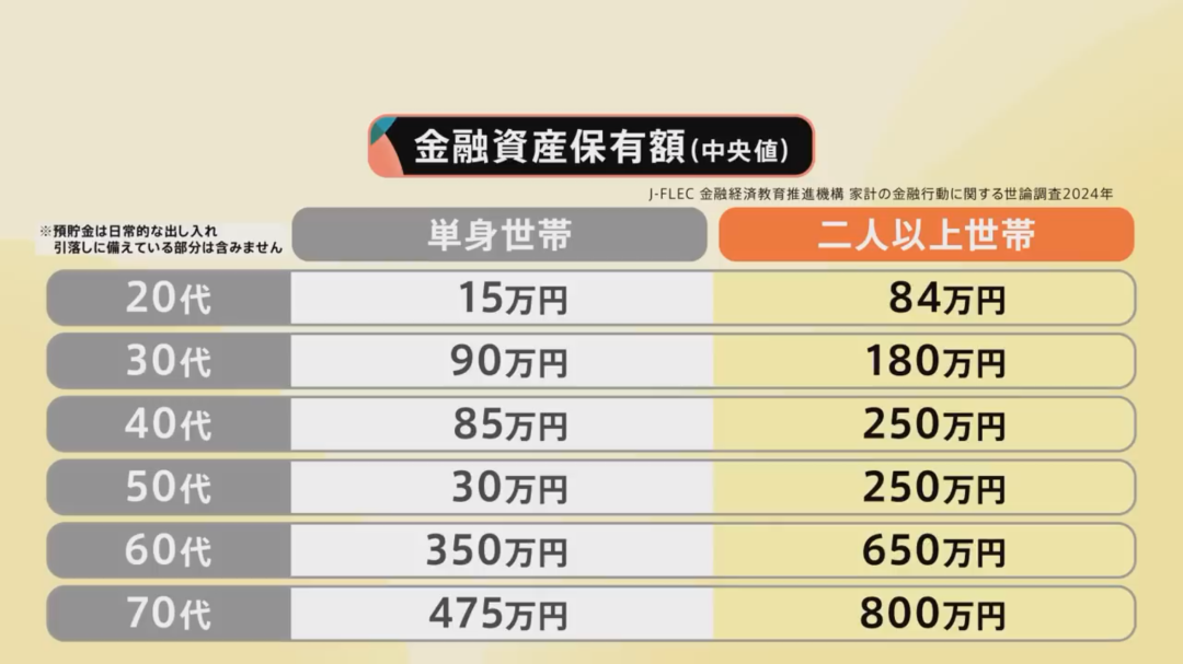 但根据官方数据,日本30代单身的金融资产中位数是90万日元。他这个数字,比平均值低了一些。