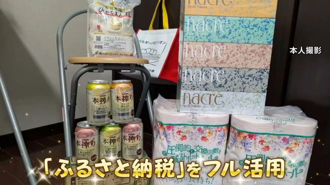 她还利用“故乡纳税”(ふるさと納税)制度拿到大量返礼品:大米、酒、水果、卫生纸都有。